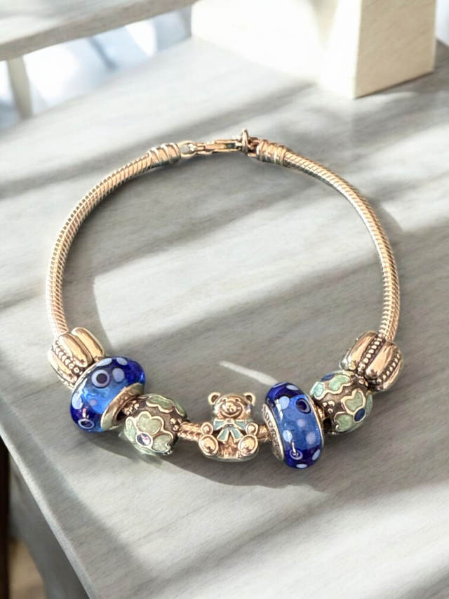 Pandora Snake Chain Bracelet & 7 charms