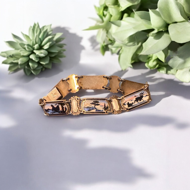 Ivar T Holth Nordic Scenes Bracelet - Mid-Century Vermeil Sterling Silver & Hand-Painted Guilloche Enamel | Norway